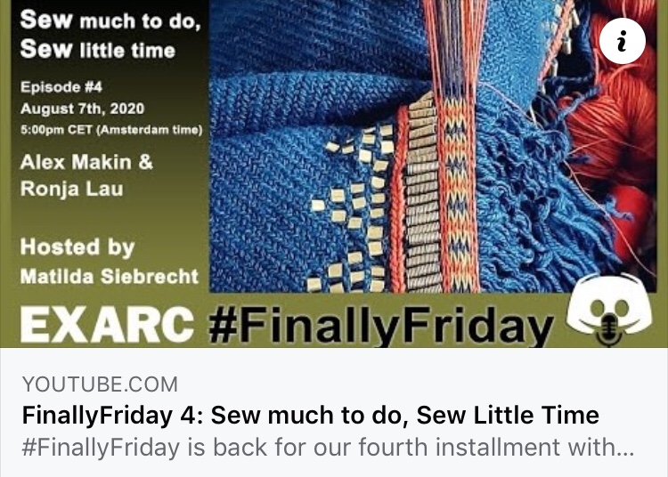 If you missed Ronja and me talking about archaeological textiles in EXARC’s 4th FinallyFriday, ‘Sew much to do, Sew little time’, last week, you can catch up with it on YouTube:
