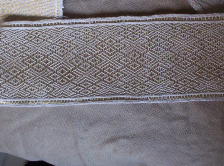 The picture from Battiscombe seems to show that the tablet-woven band was woven at the same time as the other fabric, the same warp thread serving for both textiles. I say this because I do not see any obvious whip stitching in the photo which would indicate that the band was attached to the fabric after it was woven. Can you please tell me if that is what I am seeing or whether there is something else going on? Thank you.