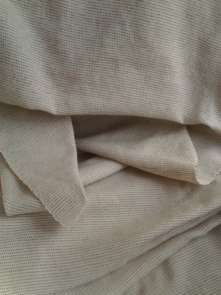 It told me it was a fine, light weight fabric. The thread count gave an idea of the right yarn thickness to go to but the openness of the weave would be trickier – how open was suitable without the integrity of the fabric being compromised. It needed to be strong enough to be embroidered on in the right way