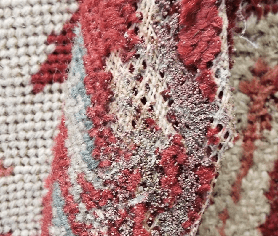 Unlike light, pests aren’t ever present but when they do strike, they can be devastating. Pests use textiles as a food source and / or a breeding ground. They devour fibres, in particular proteinaceous textiles: wool, silk, fur and feathers. Insects such as house flies can stain fabrics with excrement, so although they are not a pest in themselves they can still be a problem. Webbing clothes and case bearing moths are the most likely candidates to cause damage at home but carpet beetles are also a common pest. They all have larvae that eat fibres. If they go unchecked, pests can be hugely destructive to textiles.